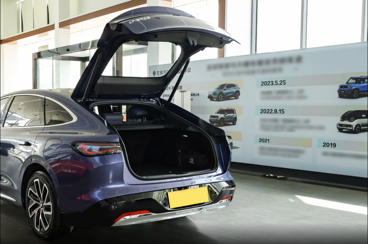 车身尺寸长宽高分别是5005/1900/1505mm,轴距是2900mm,这款车辆的前轮距是1625mm,后轮距是1635mm,车身的结构是掀背车,带有5个车门。超5米的车长也比汉DM(车长4995mm)要长出一些,而这也为新车内部乘坐提供了宽敞的位置,即使后排坐三位成年男性也不会觉得第二排拥挤。