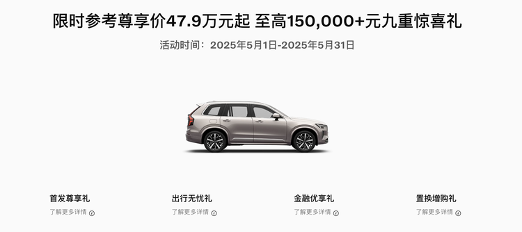 终端优惠力度较大,但部分高级配置需选装,实际购车成本可能高于沃尔沃XC90。