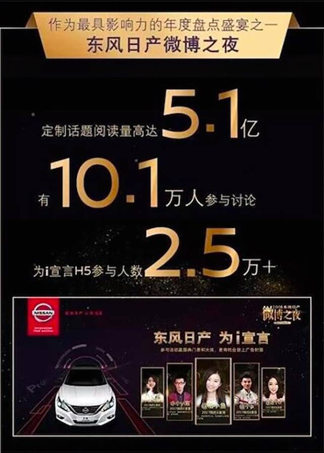 最盛大的莫过于今年1月举行的“微博之夜” ,定制话题阅读量超过5.1亿人,10.1万人参与在线讨论,如病毒一样牢牢占领了博友们的心智。