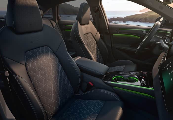 内饰沿袭奥迪家族化设计,配置包括11.9英寸液晶仪表盘、14.5中英寸控屏以及10.9英寸副驾娱乐屏,主驾驶位采用OLED曲面屏技术,并配备HUD抬头显示系统。车内配备多色可调氛围灯,提升驾乘体验。
