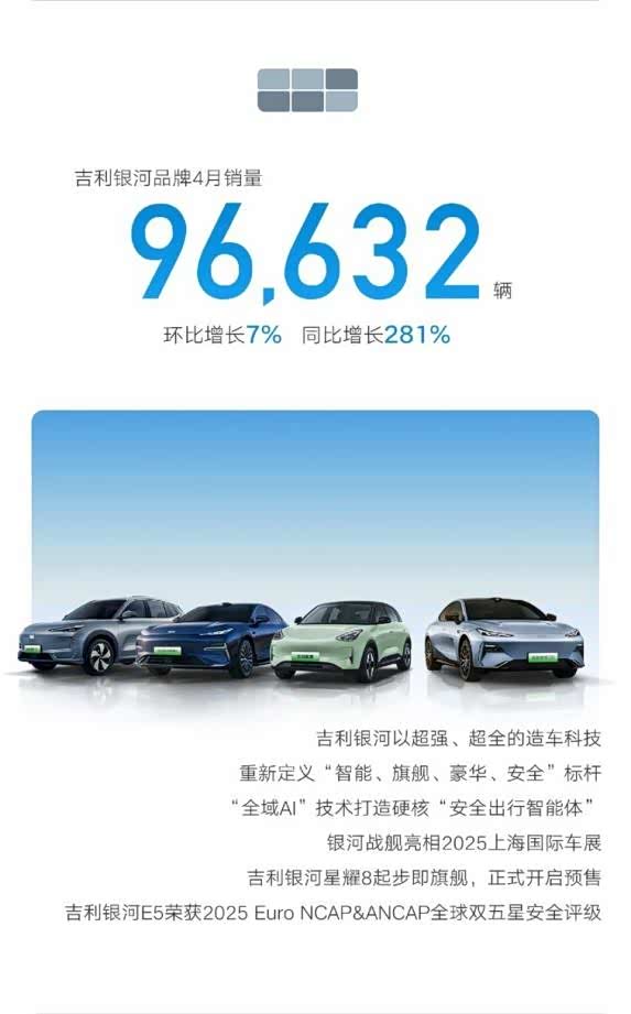 在吉利的体系中,吉利银河表现可圈可点,整个品牌的单月销量近10万辆,同比增长281%,该品牌中的银河E5凭借着不错的性价比和智能化表现,成为吉利体系中颇为有成绩的单一车型。