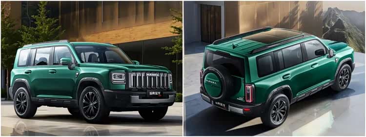 车尾部分,尾灯组从圆角矩形改为长方形竖状灯组,保留侧开式尾门、外挂备胎等经典元素,并新增铆钉装饰轮眉及19英寸熏黑轮毂,车身宽度微增至1950mm。动力将搭载2.0T发动机,匹配长城自研的9速湿式双离合变速箱,提供两驱/四驱版本可选。