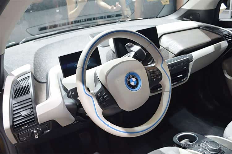 i3的内饰也极富个性和科技感,一方面是体现在工艺上,在设计方面尽管一眼就能看出是台宝马,但仔细看也很有意思,比如精巧的挡把设计,悬浮在中控台上的仪表盘和中央屏幕,实际上,实车比照片上更有层次感。