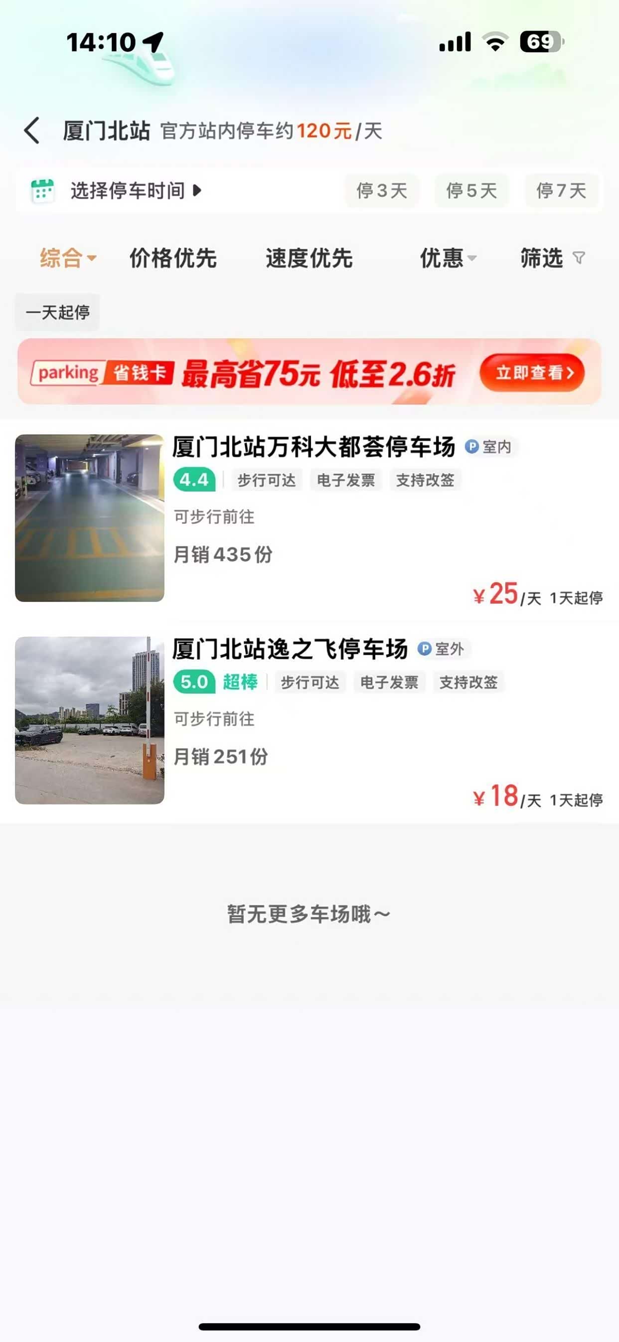 自驾厦门北站停车贵到“肉疼”?一招省出半箱油钱!开车去厦门北站,自由是真的自由——不用掐点赶公交、挤地铁,还能随时停下来拍沿途山海风景,连车载音乐都能按心情切换。但真正停进南广场地面停车场时,钱包先“心梗”了:首小时10元、次小时起每小时5元,停满24小时封顶80元!三天自驾游停车费直逼一张高铁票,返程时看着计费屏都怀疑人生……但别急着交钱! 您只需微信搜索【小强停车】在上面查看附近停车场,提前预约北站周边停车场,日费仅18元起!输入邀请码“58”,还可领取38元停车抵扣券,实测3天停车费省出近百元,够在八市买三斤野生海捕虾!
