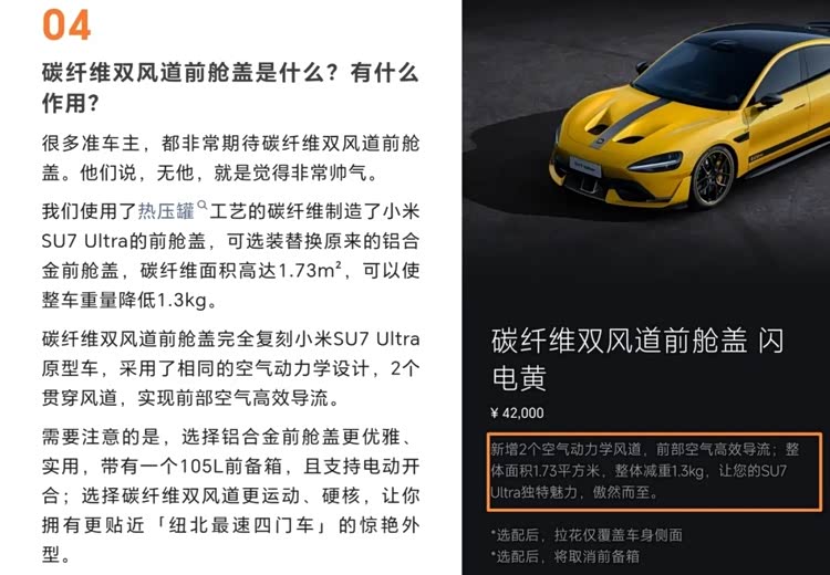 这样的结果引发巨大风波,让很多“挖孔”版SU7 Ultra车主们破大防:花4.2万元选装的碳纤维挖孔机盖,就是个摆设?