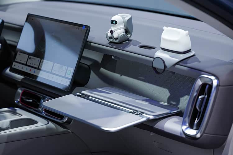副驾驶的设计也很有意思,通过6个魔术拓展孔与1个矩形凹槽,可自由组合折叠桌板、手机支架、储物盒、水杯架、挂饰等配件,电脑办公、化妆、吃外卖都方便。