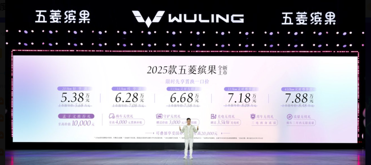 在郑州举办的“缤纷多彩,果然不同”主题发布会上,2025款 五菱缤果(参数|询价)正式上市。