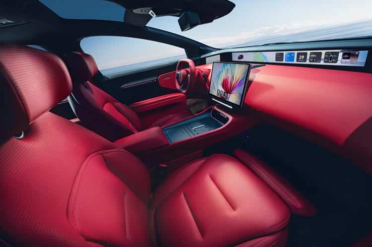 阿维塔12新增岱红内饰配色,完美诠释低调奢华。岱红源于中国传统色彩,象征吉祥、热情与力量,低饱和度设计使其介于张扬与暗沉之间。搭配中控浮岛桦木直排纹、炭灰色装饰、Nappa真皮和超纤仿麂皮顶棚,营造出视觉与触感俱佳的座舱环境。Ultra增程版车型在配置上还增加了智能电动门套装,包含电动门和前门迎宾logo灯,提升科技感与便捷性。此外,在阿维塔11上备受欢迎的20英寸旋叶轮毂,新款阿维塔12也提供选装,进一步满足用户个性化需求。