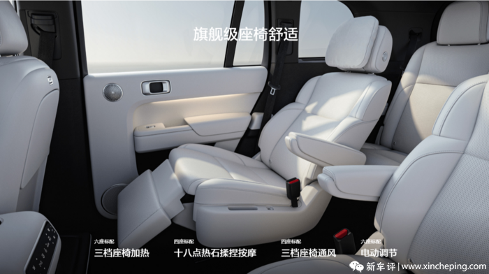 舒适体验方面,理想L9智能焕新版进行了更为全面的升级。前排和第二排座椅升级为MEGA Home同款十八点热石揉捏按摩系统。后排娱乐系统升级为21.4英寸大屏,相较于之前的15.7英寸屏幕,显示面积增加约86%,此外,理想L9智能焕新版还搭载了800万超清防炫目流媒体后视镜,拥有120°广阔视野范围,采用自动防炫目设计,确保在夜间和雨天也能保持清晰视野。