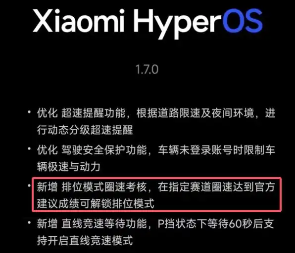 此次更新中, 小米SU7 Ultra(参数|询价)不仅对车辆动力输出进行了限制,原本1548匹的最大马力被锁定,还新增“排位模式圈速考核”。这意味着,车主必须在指定赛道达到官方圈速标准,才能解锁排位模式,否则车辆只能使用大约900匹马力。随后,小米汽车表示已暂停此次推送,并针对已升级的少量用户,计划在4 - 8周后的新版本更新中解决该问题。