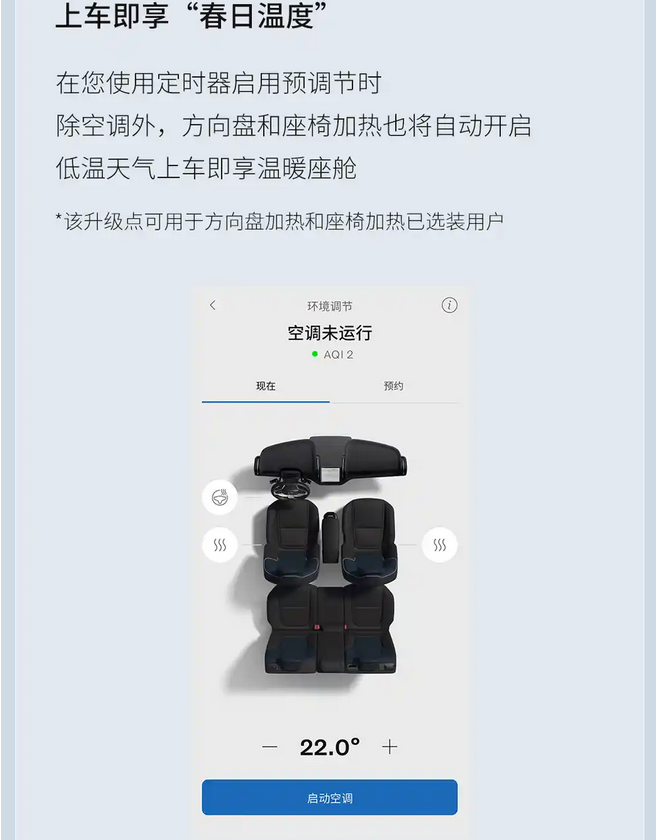 此次升级还引入了远程空调预调节功能。车主可通过定时设置远程启动车辆空调,并在低温条件下同步开启方向盘及座椅加热,有助于实现车内温度的预设管理。