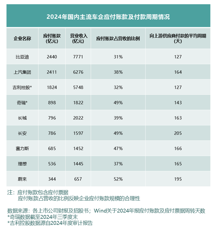 负债结构的差异进一步凸显中国车企的稳健基因。国际车企普遍依赖高成本融资,例如丰田有息负债占比达68%,福特为66%,利息负担沉重。而比亚迪的有息负债占比仅为5%,总规模286亿元,在全球主流车企中处于最低水平。这一成绩得益于其“轻有息、重无息”的融资策略——通过供应链应付账款(占比31%)等无息负债支撑运营,2024年应付账款周转天数仅127天,显著优于行业平均184天,既保障了供应商合作黏性,又降低了财务成本。