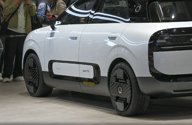 首先从外观造型上来看,目前车展上所展示的是全新奇瑞QQ的概念车,但个人认为最终的量产版与概念车不会相差太多,无非就是将前脸的一些小细节抹掉,再换一套主流的轮毂,侧护板区域的涂装抹去等等。不过有一说一,概念车的全新奇瑞QQ也确实有很多关于“QQ”的元素,例如前脸的正中央就集成了一个字母“Q”,同时C柱区域的熏黑饰板上也有字母“Q”标识加以点缀,从而提升整车的辨识度。
