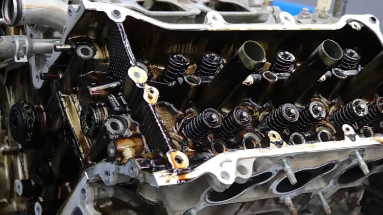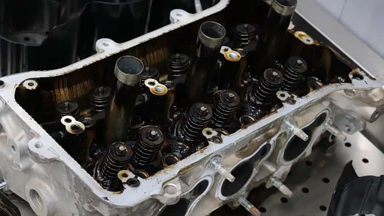里面全是油泥、残渣,以及机油窜烧的积碳痕迹。