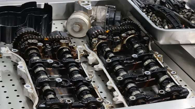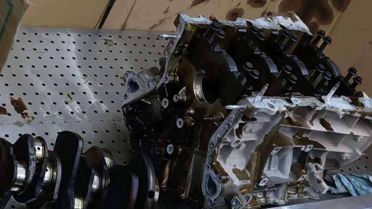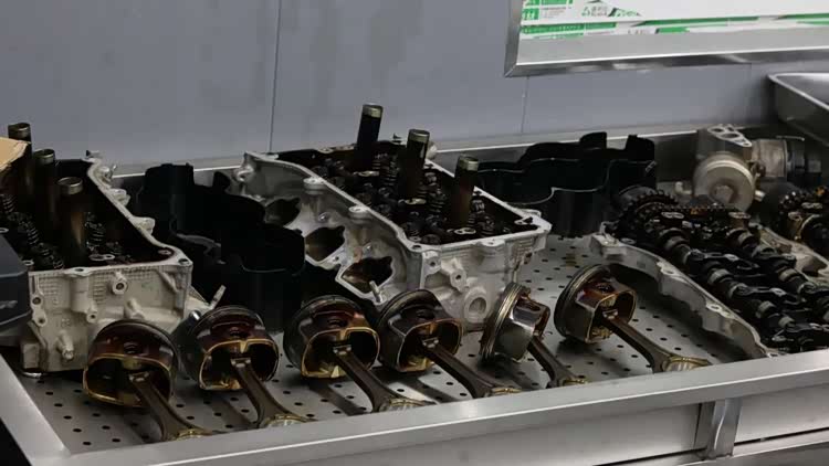 进气系统、正时系统、凸轮轴系统、曲轴系统、中缸活塞等全部分解完毕。