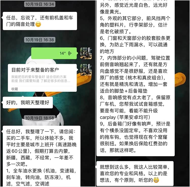把车况问题都发给车主看了,然后又打了一通电话,把情况又跟车主说明了一遍,问问车主想怎么解决,是想大修一步到位,还是小修过渡一下。车主最终决定大修!不过咱这车主心态真的好,还笑着说:中奖了...哈哈哈