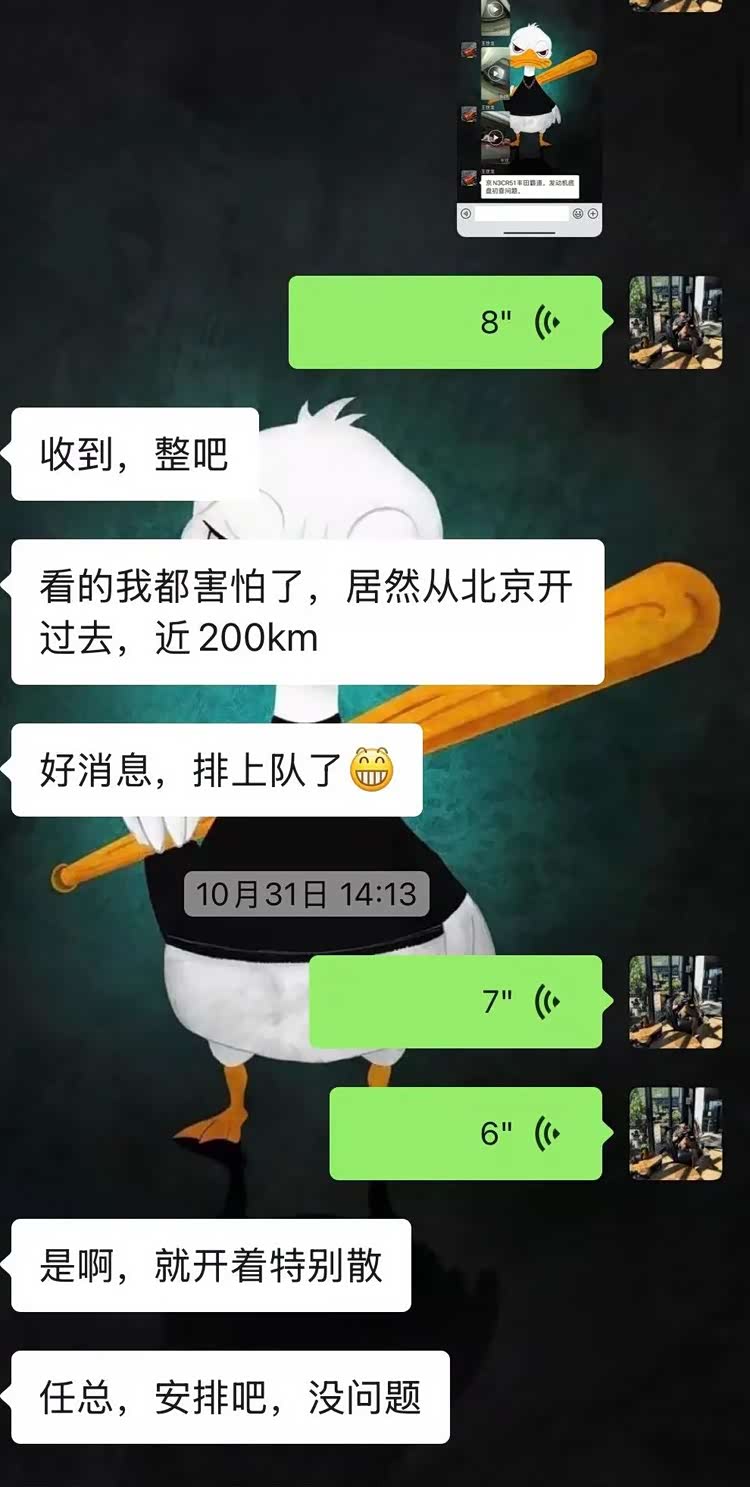 车主送完车回去后,我让他整理一下使用需求和整备需求给我,方便咱们整备做参考。