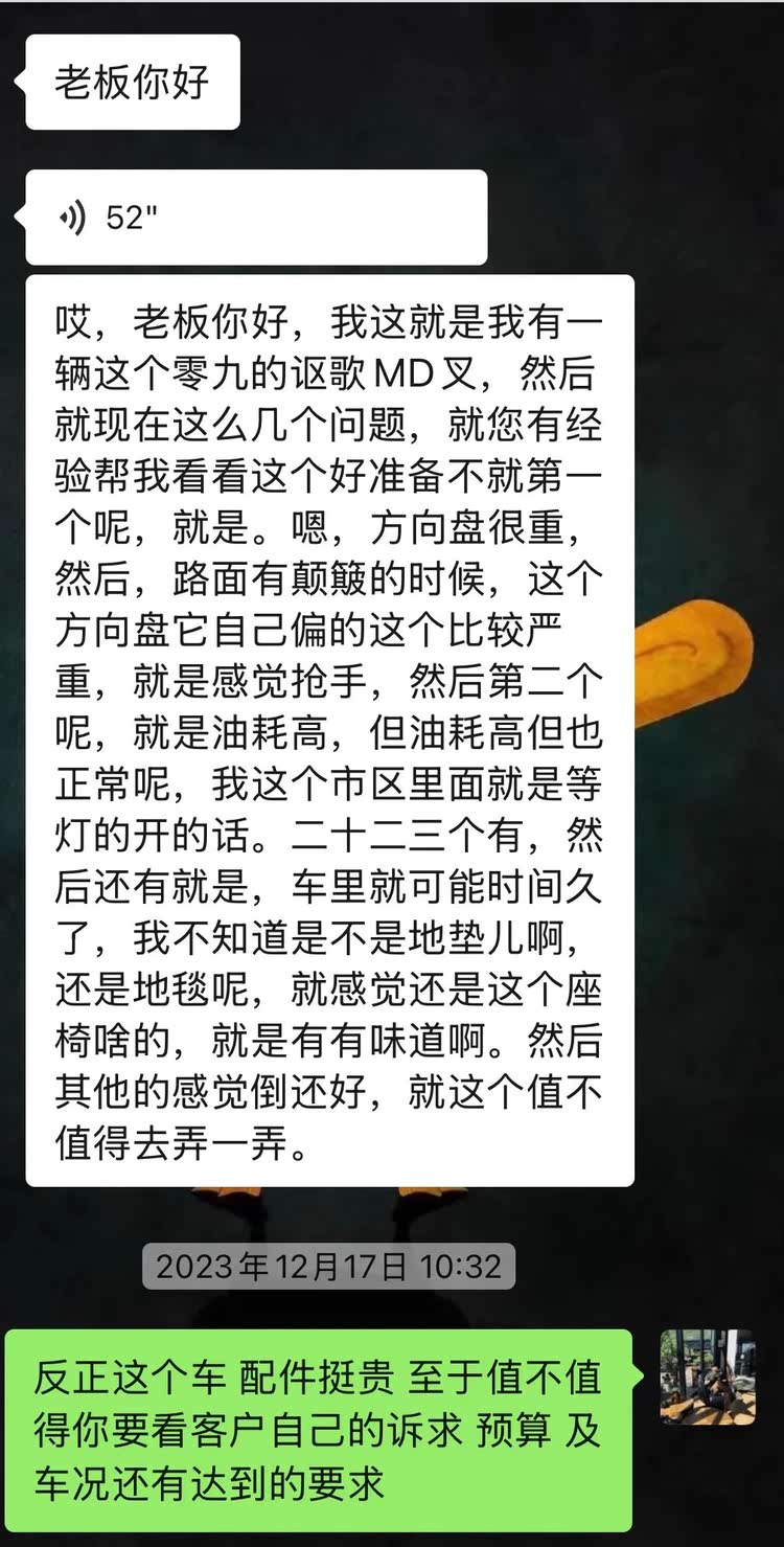 进入主题,这是车主初次找我咨询这车的聊天记录。