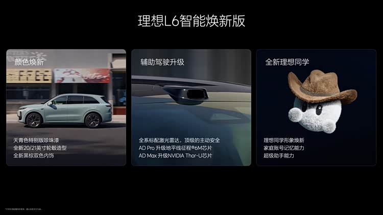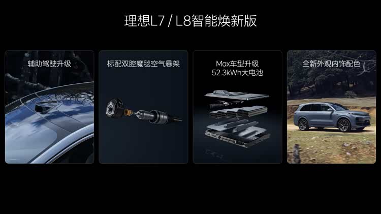 5月8日,理想L系列智能焕新版正式发布。本就以智能见长的理想L系列,通过辅助驾驶芯片的升级、全系标配激光雷达等举措,更加强化其智能属性,价格则保持不变。 理想L6(参数|询价)智能焕新版24.98万-27.98万元,理想L7智能焕新版30.18万-35.98万元,理想L8智能焕新版32.18万-37.98万元,理想L9智能焕新版40.98万-43.98万元。