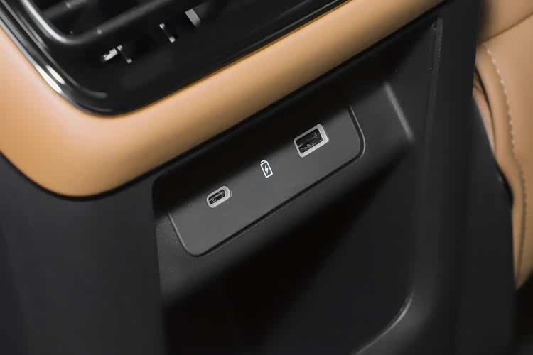 而且储物空间也很不错,前排配备多层中央扶手箱、门板储物格及杯架,中控台下方设有开放式储物区,支持 50W 无线充电;后排门板储物格容积充足,中央扶手带杯架,后备厢常规容积 405L,后排座椅支持比例放倒(具体比例未标注),可扩展装载空间。车身多处设有隐藏式储物细节,配合掀背式尾门开口,日常家用及长途出行需求均可满足,空间利用率较高。