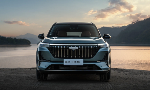 先看看外观。第四代博越 L前脸变化较大,采用了直瀑式进气格栅和贯穿式灯带,格栅下方有一条连接两侧T形通风槽的装饰带,将前脸分割成两部分,形成层次感,装饰带下方是一个黑色梯形进气口。