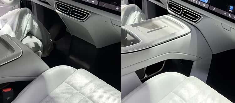 有意思的是,它的马鞍区是能够前后移动,当中还配备10L冷暖冰箱,这出乎许多人的意料,实用性和灵活性拉满。尤其遇到单边停车位不好下车,或者想伸腿休息,十分好用。