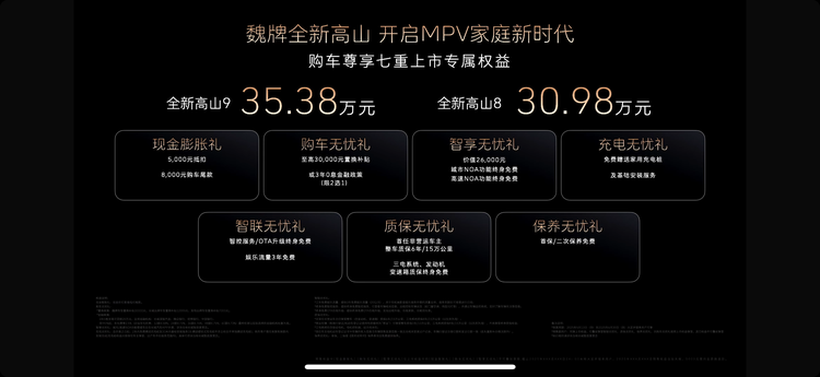 5月13日,魏牌全新高山8/9正式上市,全新高山8售价30.98万,全新高山9 35.38万。相比预售价,分别下调了2万和2.6万;全新高山选择了降价让利,全新高山的价格或许和魏总说的,网友的声音他都听到了。