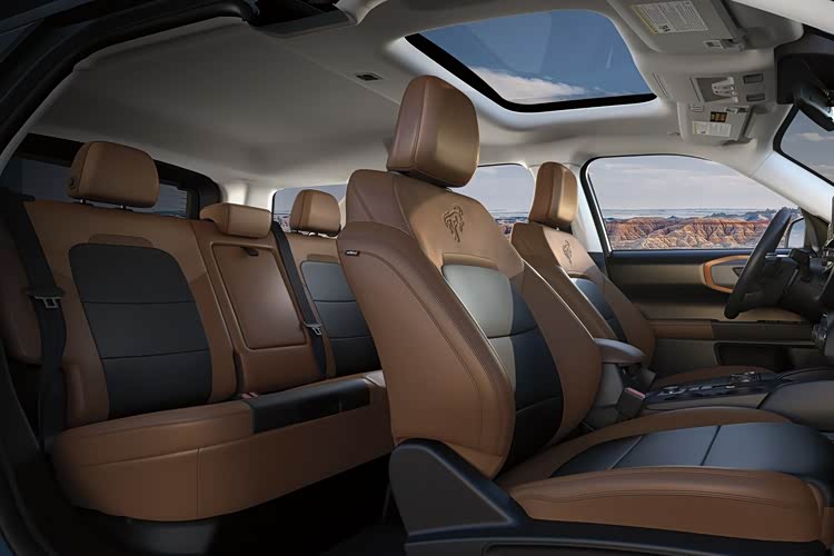 -外观:延续Bronco家族方盒子造型,短小精悍(参考海外版车长4.38米),标配Safari风格车顶(增加头部空间和载物灵活性)、外挂式备胎设计,可选9种车身颜色(如沙漠黄、火山绿等需加价选装)。
