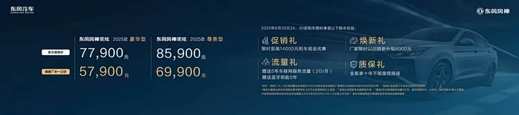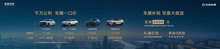 另外,购车可享受武汉市地产车补贴至高6000元,还可享受9.9元抵2000元购车券的超大礼遇红包,以及终身免费保养服务。东风风神还重磅推出了2025年华中国际车展千万让利计划,车展期间现场下订2024款风神奕炫,只需5.99万元就能包牌开回家;东风风神L7 518畅享型直降两万,一口价9.99万元;东风风神皓瀚劲尚版一口价7.99万元;东风风神皓极豪华版,旧车置换4万元,上述这些优惠还能叠加享受湖北省置换补贴或国三报废补贴,诚意拉满。