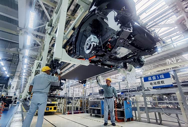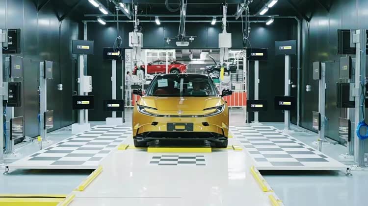 <一汽丰田新能源工厂 总装车间 底盘生产线的bZ5车身>