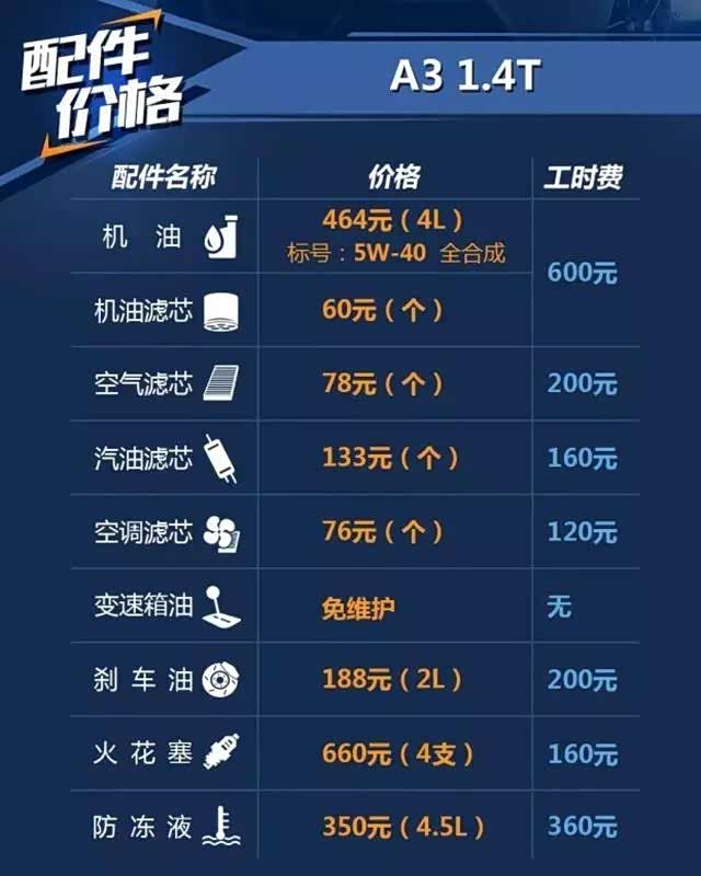 而且由于机械结构上的高度相似,在大多数的情况下,A3的独立后悬可能也发挥不出有事来。所以作为奥迪A3来说,品牌力方面的优势,在刚买车的那段时间,还是可以给足车主优越感的,几乎所有普通品牌A级车,在逼格方面都要落后于它。然而随着时间的推移,品牌上的优越感慢慢的趋于平淡之后,相比高尔夫,拥有奥迪A3需要承受着更大的压力。譬如在售后维修保养方面,虽然两车是基本一样的动力系统,但在收费标准上还是有很大的不同,尤其是奥迪的工时费高的可不止是一丁点,在零整比方面两车也有明显差异(维护费用数据来源于汽车之家,仅供参考)。