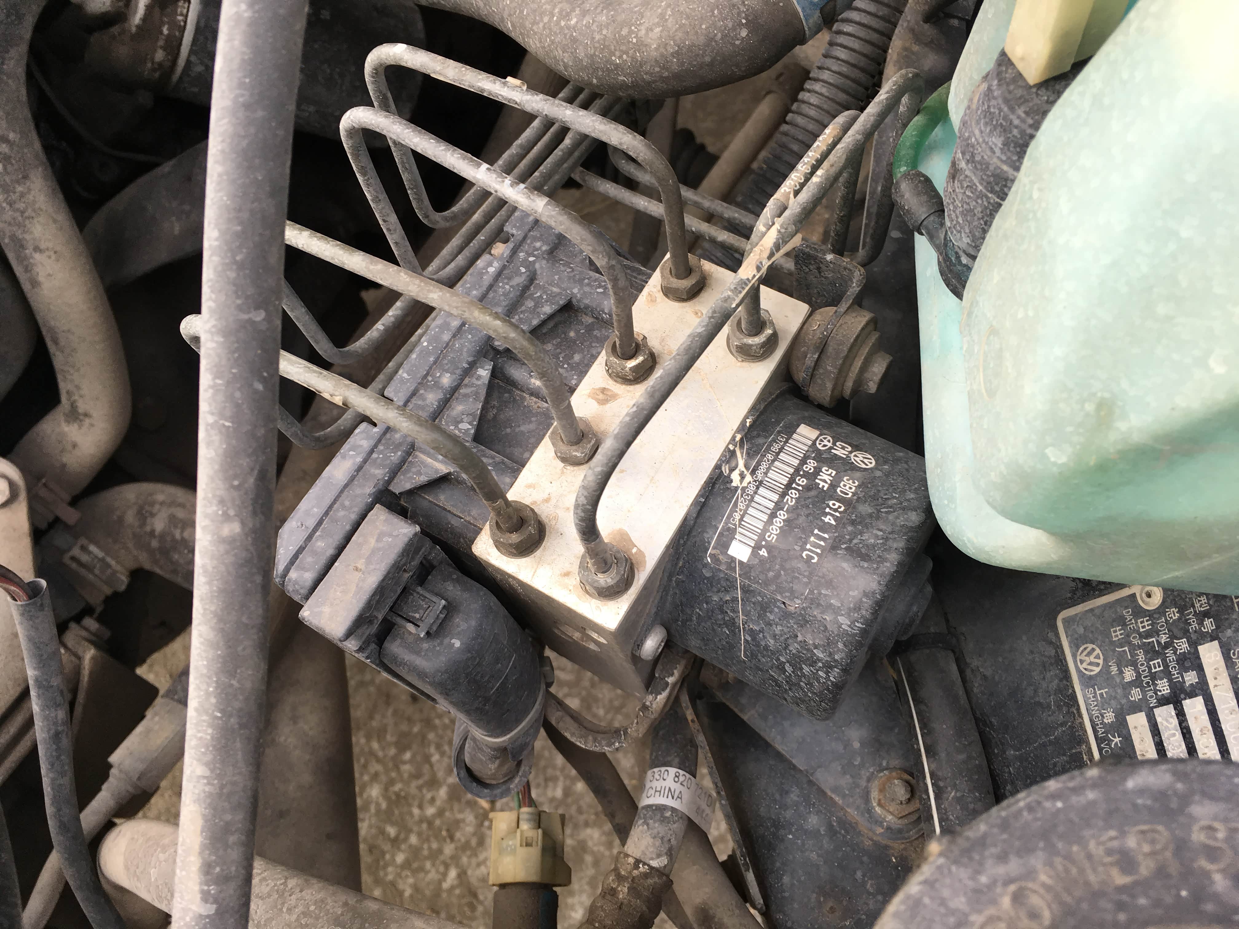 普桑也是分高低配的。高配有电动门窗和中控锁,更牛逼点的还有遥控钥匙。不过高低配差别最大的地方还是在于有没有ABS,毕竟ABS是个挺重要的安全配置。分辨方法也很简单,就是看机舱里有没有ABS泵,就是下图的这玩意。