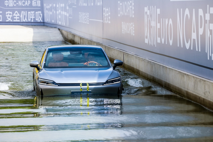 在这基础上,奇瑞还给风云A9L安排了“铁人三项”碰撞试验,在经历了55km/h柱碰、400mm深度涉水、40km/h刮底等远超国标的暴力测试后,风云A9L依然能正常行驶。