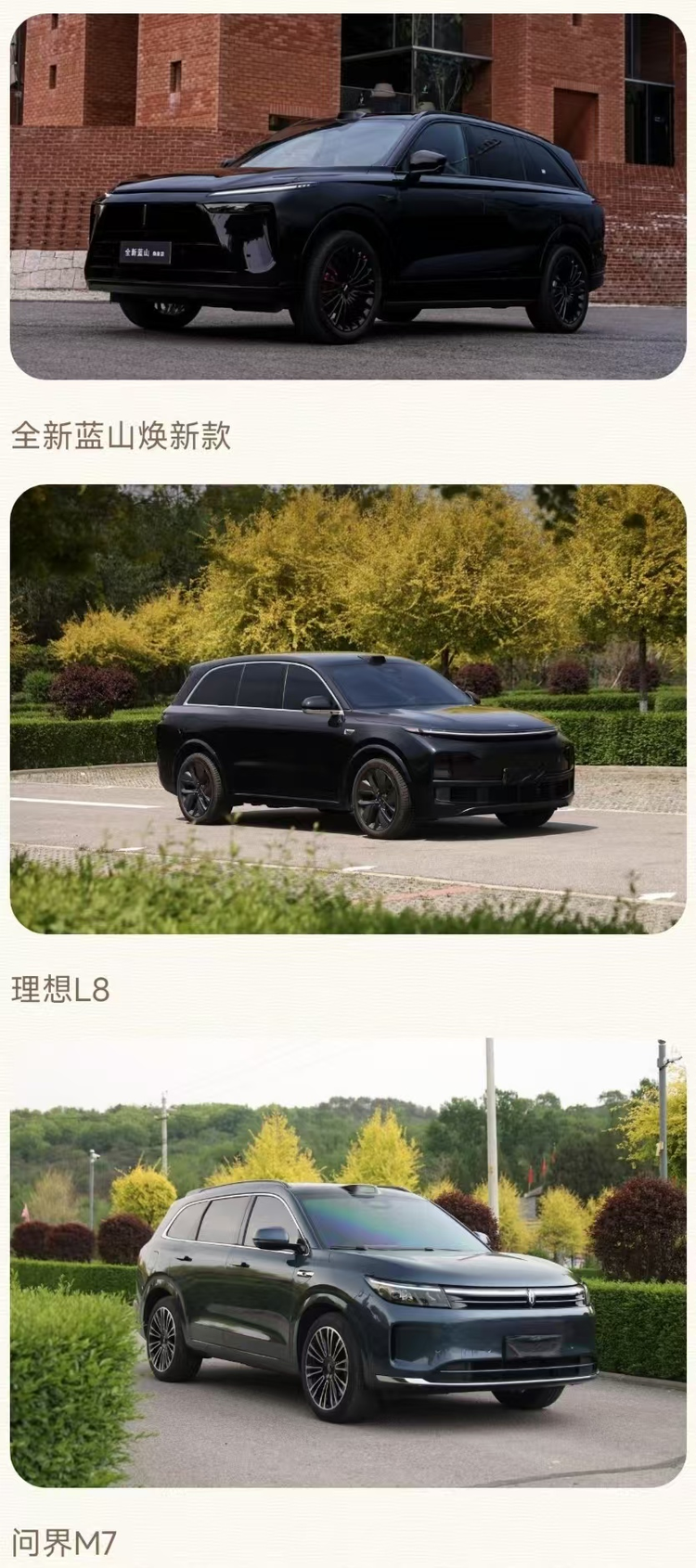 综合来看,魏牌全新蓝山焕新款通过优越的空间布局、强劲的动力性能、完善的智能化配置以及卓越的安全性能,成为30万级大六座SUV市场中的全能型代表。而理想L8则以舒适性和科技氛围吸引了追求品质生活的消费者;问界M7则凭借灵活设计和提速表现赢得了喜爱驾驶乐趣的用户。您的选择会是哪一款?欢迎分享您的看法!