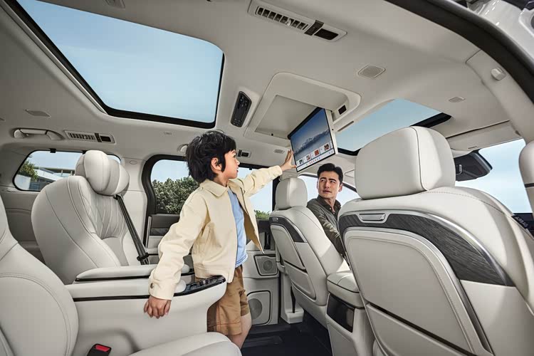 岚图梦想家采用双15.4英寸悬浮式中控屏与10.25英寸全液晶仪表,显示信息丰富,操作流畅。其丹拿音响系统配备12个扬声器,音质纯净自然,对人声和乐器的还原度极高,尤其适合播放古典音乐和流行歌曲。但该车缺乏独立的后排娱乐屏,后排乘客需通过手机投屏实现娱乐功能,便利性大打折扣。不过,其车机系统支持与华为手机、平板的无缝流转,导航、视频等内容可在不同设备间自由切换,一定程度上弥补了娱乐功能的不足。
