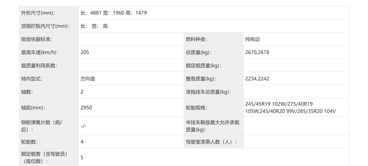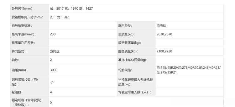 全新小鹏P7车身尺寸等信息
