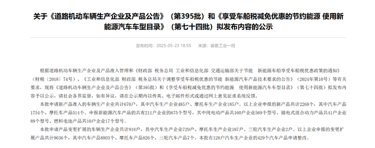 工信部发布第395批《道路机动车辆生产企业及产品公告》