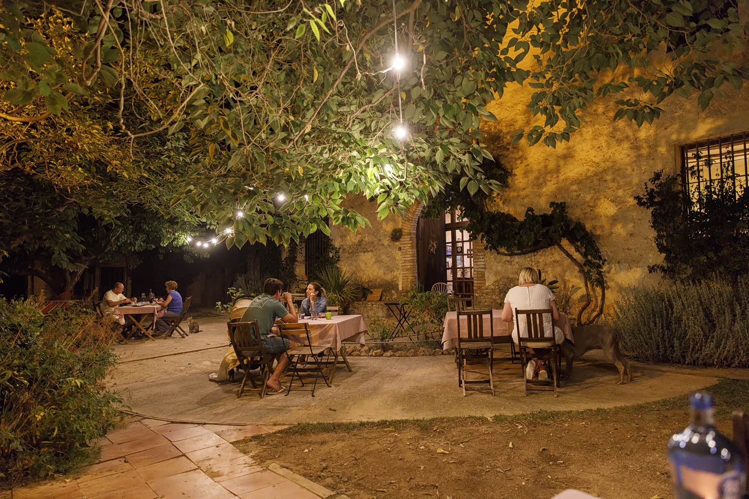 瞧瞧人家的“农家乐”,这家农舍有着300多年历史,位于一大片葡萄环绕的一个小山坡顶,外面爬满了绿植,小院子种值着几株百年大树,下面摆放着几张餐桌,相当有味道。女主人是个绘画爱好者,墙上挂着她自己画的各种油画。