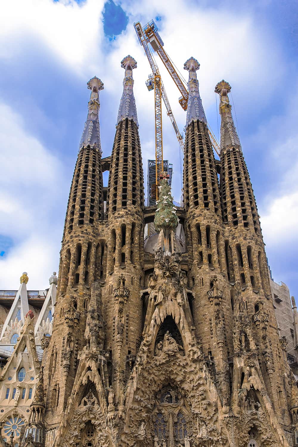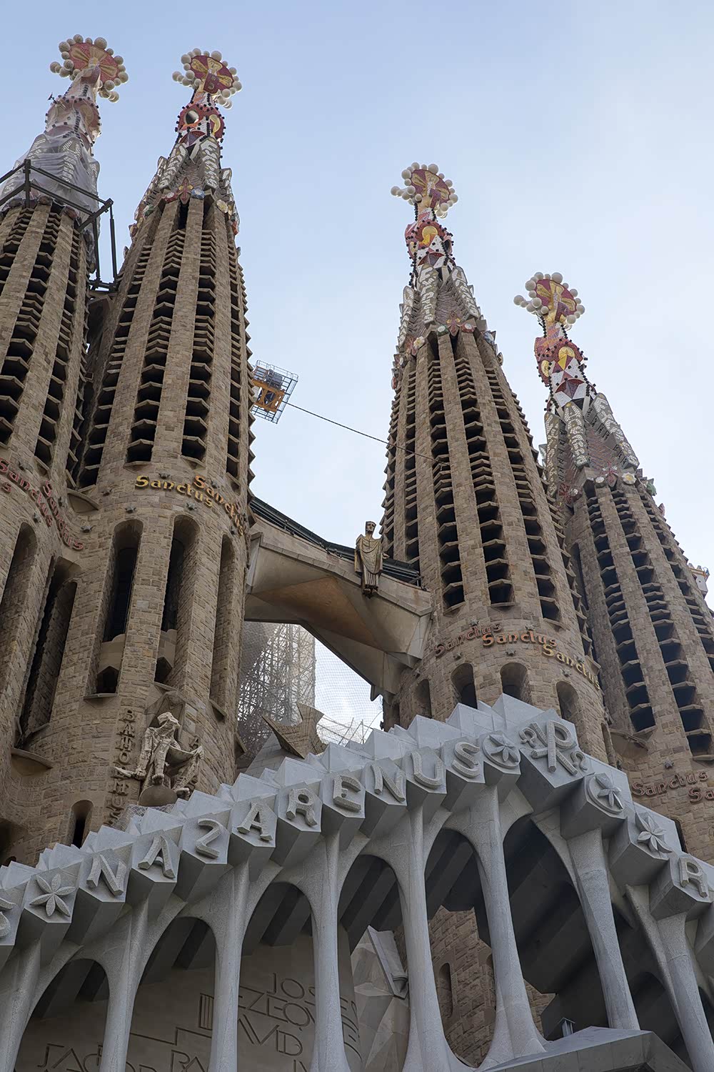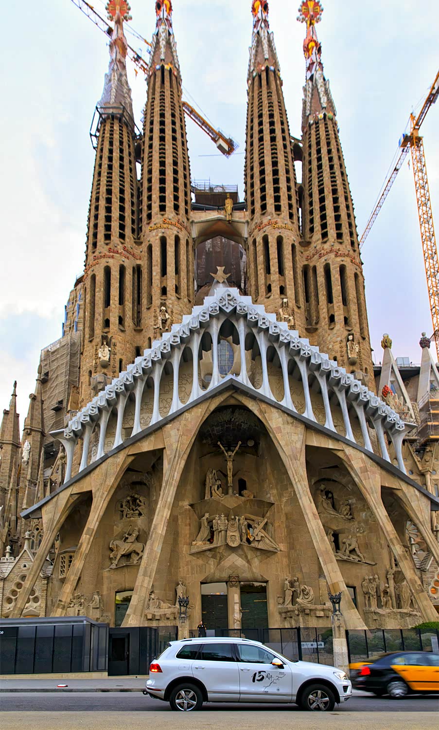 圣家堂是我们第二天行程的第一站,圣家族大教堂始建于1882年,后高迪于1883年接手主持工程,融入自己的建筑设计风格、哥特式和新艺术运动的风格进行了建设。高迪将他的晚年投入了教堂的建设,直至73岁(1926年)去世时,教堂仅完工了不到四分之一。 圣家堂的建设进展缓慢,仅靠个人捐赠和门票收入维系,中间又受西班牙内战干扰。2010年,建设的进程过半,然而整个建筑过程中最大的一些挑战依旧未被解决。[ 预计于2026年,即高迪逝世的百年纪念之时完工。这在建筑史也算是绝对奇葩,建了两百多年还没完成,不过高迪说过“我们的客户上帝并不着急,所有的时间全在他的手里”