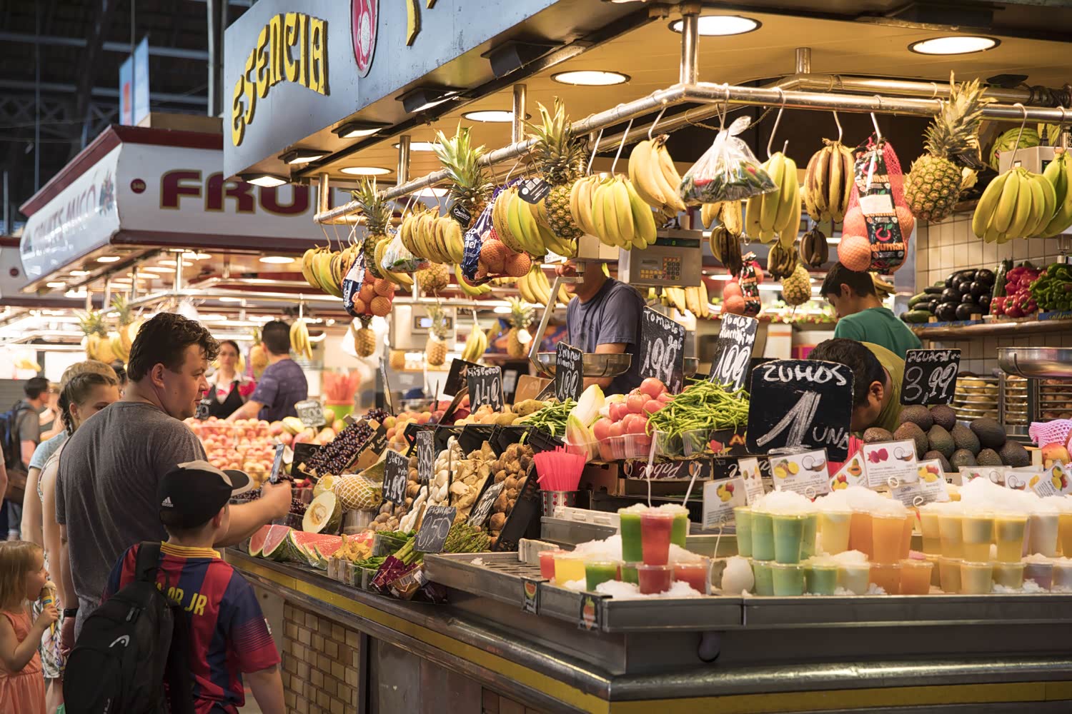 这里能买到各种吃的,水果、特色腊肉、烧烤,各种叫不出名字的西班牙特色食品