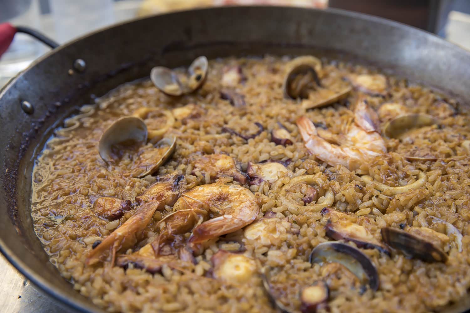 我也抗不住美食的诱惑,在旁边的一家小店里先来了一份来西班牙必吃的海鲜饭