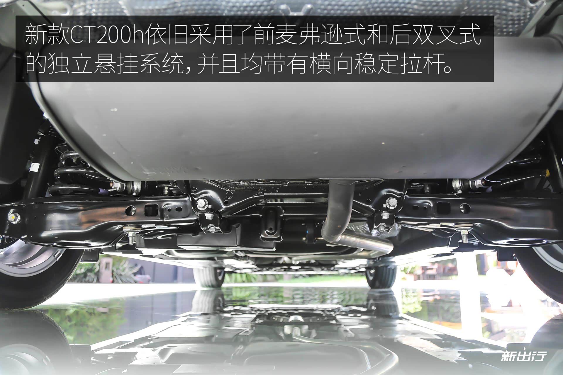 底盘悬架方面,新款雷克萨斯 CT200h 相比老款车型也没有变化,同样采用了前麦弗逊式和后双叉式的独立悬挂系统,与此同时,前后悬架还均带有横向稳定杆。
