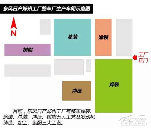 东风日产于2010年9月正式落户郑州,郑州工厂成为东风日产继广东花都、湖北襄阳之后的第三个生产基地。郑州工厂目前占地55万平方米,依照正在实施的产能扩建项目规划,未来将占地161万平方米。
