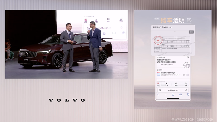 在选定自己心仪的沃尔沃全新S90后,就会和销售签署购车合同,这时销售顾问会100%清晰告知消费者产品价格和来源,这其中就包括原副厂信息、品牌、生产厂商、价格等信息,在确认信息的情况下,双方签署《销售随车产品告知书》。