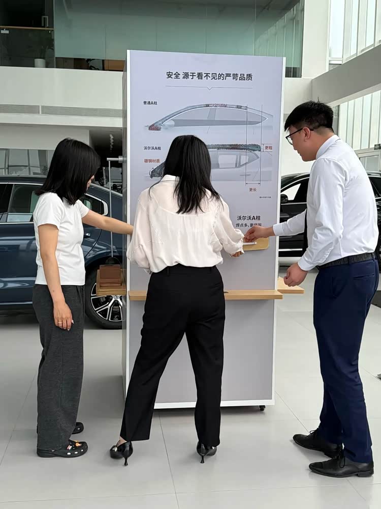 沃尔沃基于对用户消费顾虑的洞察和理解发布了“消费透明承诺”,直接将规则和流程摆在了明面上,如果你到店去看全新S90,那么在进入展厅前,入口的侧边铭牌就有《销售随车产品告知书》样例、洽谈桌和财务室收银处台卡等“消费透明承诺”物料,起到一个非常好的引导作用。