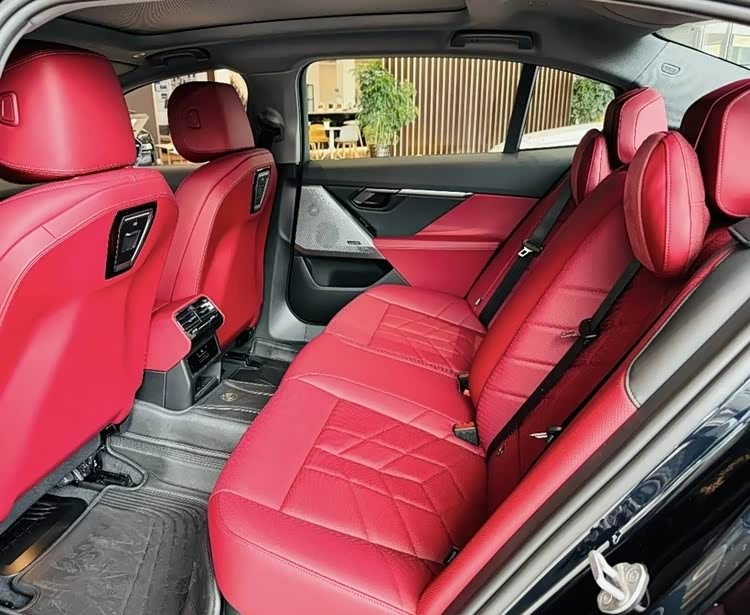当你走进车内,你会看到一个由12.3英寸全液晶仪表和14.9英寸中控屏构成的智能联屏,这无疑增加了车内的科技感。高通骁龙8155P车载智能车机芯片确保了车载系统运行的流畅性。前座和后座的鲜艳红色与黑色的设计形成了鲜明的对比,充满了活力和激情,能够极大地激发驾驶者的驾驶欲望。此外,12扬声器哈曼卡顿音响为乘客提供了沉浸式的音乐体验,31英寸8K的后排悬浮式娱乐屏幕和配备头部软枕的后排座椅,都极大地提升了乘坐的舒适度。