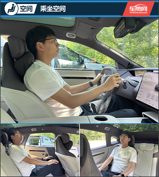 在乘坐空间方面,身高180cm的体验者调整好前排座椅后,无论横向还是纵向空间都较为宽裕。保持前排位置不变,体验者进入后排后,头部空间约为4指、腿部空间约为2拳。考虑到该车采用溜背式造型,这样的空间表现堪称优秀。值得一提的是,评测车后排配备三个独立头枕,其中左右两侧头枕采用侧翼凸起设计,可为乘客头部提供更好的支撑,有效提升了乘坐舒适性。