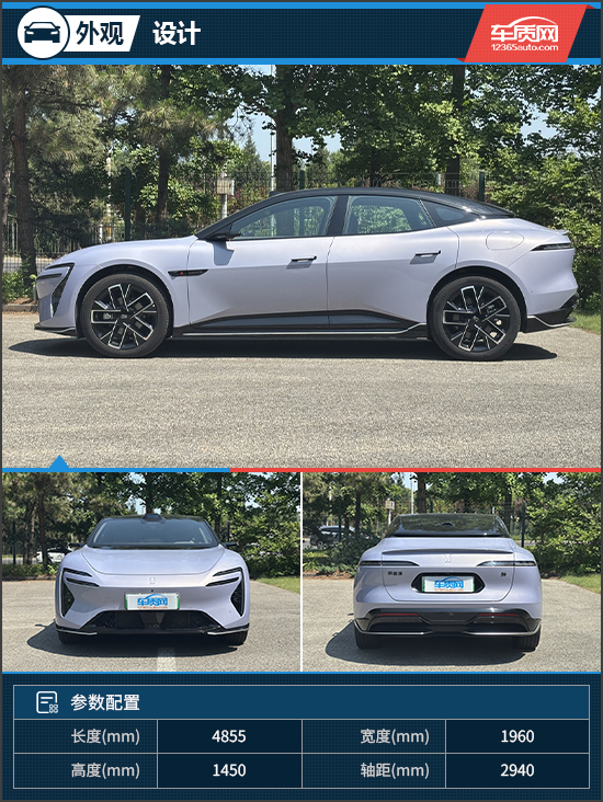 评测车延续了阿维塔品牌一贯圆润而个性的车身线条。前脸采用“猎豹凝势”设计语言,纤细的分体式大灯辨识度极高,自发光Logo则巧妙融入车身,视觉效果非常协调。车身侧面,悬浮式车顶与无框设计车门为评测车的颜值打下了良好基础,溜背的设计也使得其身段更显紧凑。车尾部分则延续了阿维塔12的设计理念,层次感分明,并且没有提供后风挡玻璃,想要观察后方需通过车内的流媒体后视镜。另外,配备的掀背式后备厢凭借巨大的开启角度,带来了十分出色的实用性。