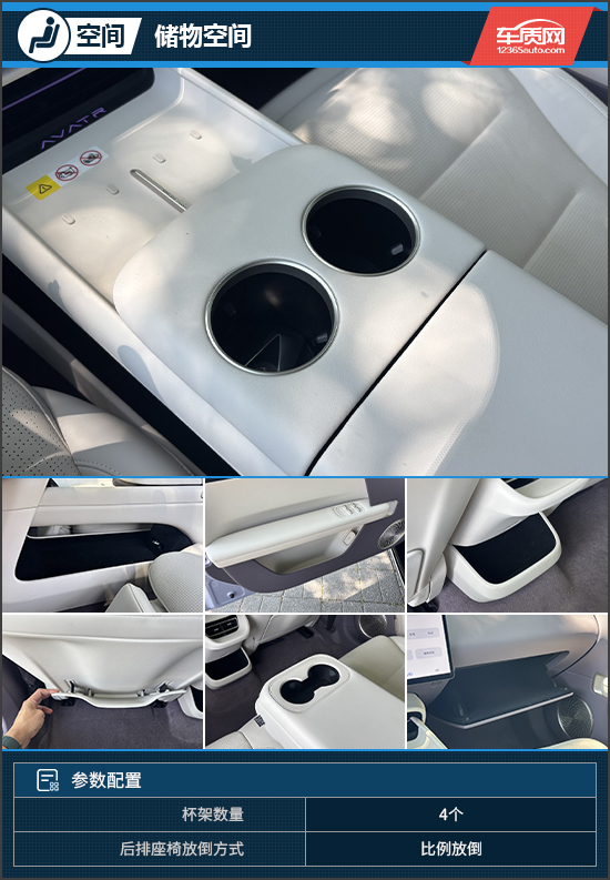 在储物空间方面,评测车能够较好满足日常使用需求。中控岛台前方配备两个手机放置槽,左侧支持无线充电,实用性较强。下方采用掏空设计,储物容积充裕,方便收纳随身物品。此外,后排空调出风口下方还设有一个小型储物格,便于后排乘客存放小物件,也可在手机充电时临时摆放,进一步提升了便利性。
