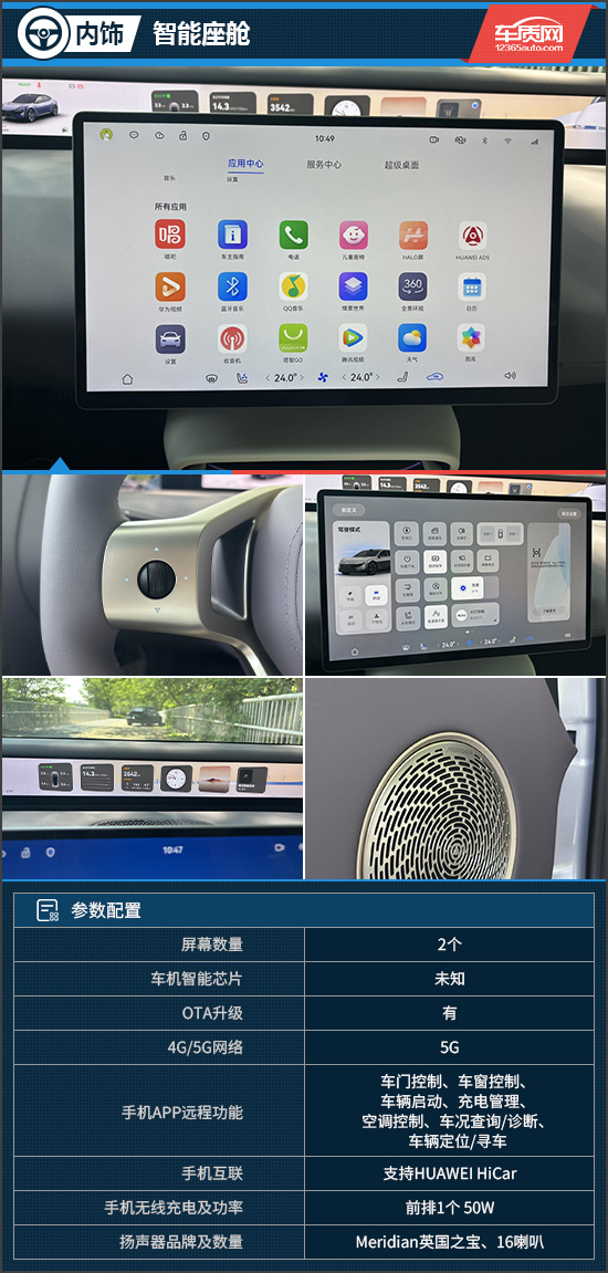 在智能座舱方面,评测车搭载鸿蒙座舱系统,配备15.6英寸中控屏,界面设计简洁直观,操作流畅、响应迅速。语音交互方面,支持四区域语音分区识别、声纹识别及可见即可说等功能,识别率和指令执行均能让人满意。值得一提的是,其“超级桌面”功能可实现与华为手机的深度互联,使用户无需操作手机,即可在车机端使用手机APP,进一步提升了驾驶便利性与行车安全性。此外,标配的英国之宝音响系统营造出了沉浸式的车内听觉体验。